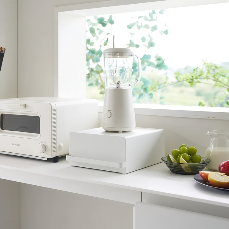 Platsbesparande. En utdragbar låda i metall att placera på köksbänken.