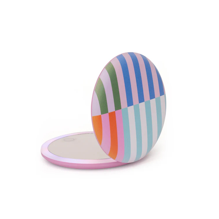 Fickspegel med två spegelytor – en vanlig och en med 3x förstoring – och inbyggd belysning som dimras steglöst och justeras i tre ljusfärger. Ljuset tänds automatiskt när spegeln öppnas, vilket gör den snabb och enkel att använda. Det kompakta formatet och uppladdningsbara belysningen gör den smidig att ha med både i vardagen och på resan.