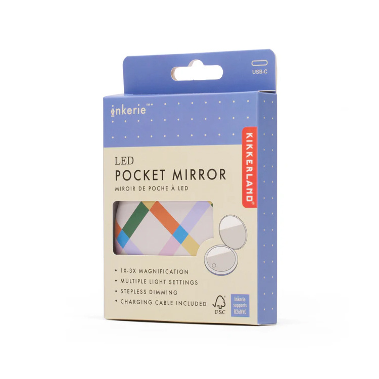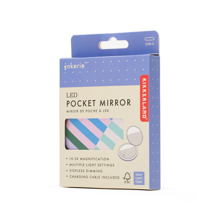 Fickspegeln är utrustad med två olika sidor för att passa olika användningsområden. Ena sidan är en vanlig spegel som ger en naturlig helhetsbild. Den andra sidan har 3x förstoring, vilket gör det lättare att se detaljer vid exempelvis sminkning, brynplockning eller hudvård.Dimbar och uppladdningsbar belysning