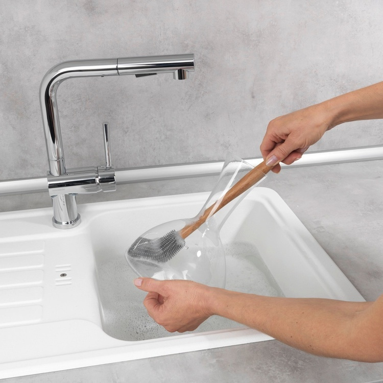 Den mjuka, böjliga silikonborsten kommer åt att göra rent i alla hörn och kanter -