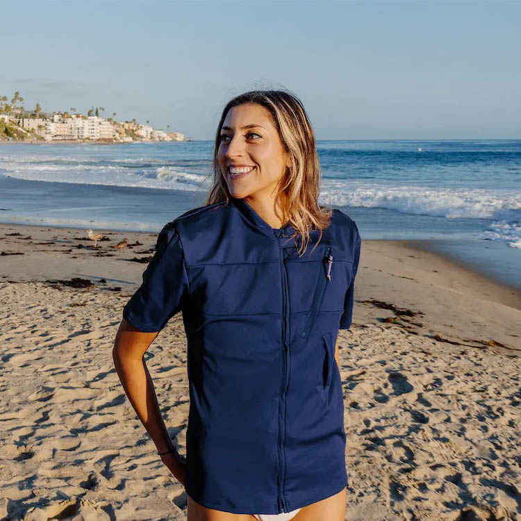 Tröjan är tillverkad i ett tekniskt material som ger UPF50+ – det högsta skyddet mot solens UV-strålar. Materialet är dessutom snabbtorkande och bekvämt att bära även när det är blött.Certifierad säkerhet