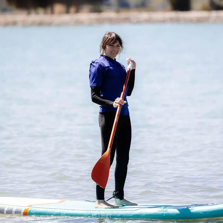 Flytfunktionen aktiveras manuellt med ett enkelt ryck i snöret. Inuti tröjan sitter en gaspatron som fyller västen på några sekunder. När flytvästen är uppblåst ger den god bärkraft och stöd i vattnet. Eftersom systemet är manuellt styr du själv när det ska aktiveras – en trygg lösning för simkunniga vuxna som vill ha kontrollen i egna händer. Efter att flytvästen har blåsts upp töms den enkelt på luft. Du behöver bara byta ut gaspatronen för att kunna använda tröjan igen. OBS! Gaspatronen är för engångsbruk och behöver ersättas efter aktivering. Det går snabbt att byta patron och tröjan är redo att användas igen. Klicka här för att komma till refill för gaspatronen.Skydd mot solen – UPF50+
