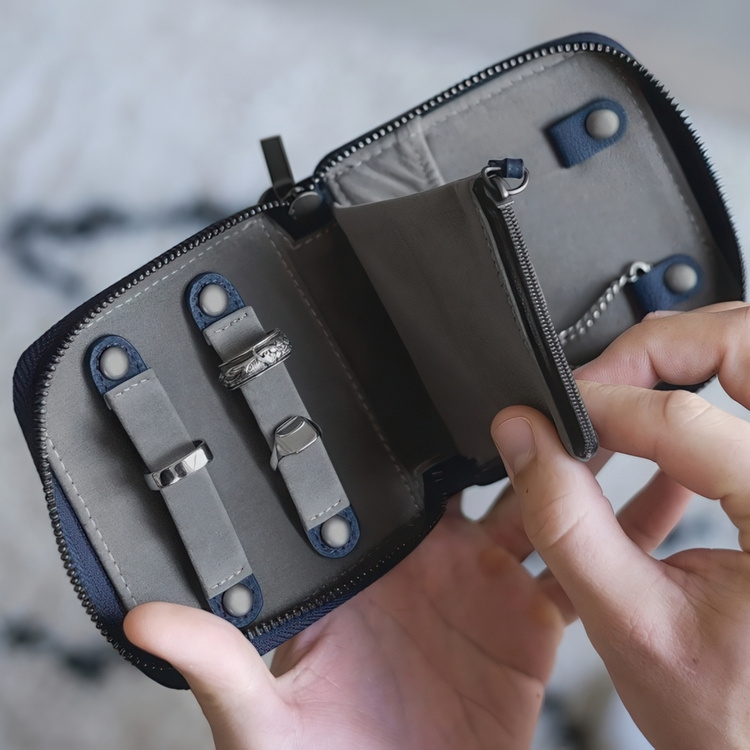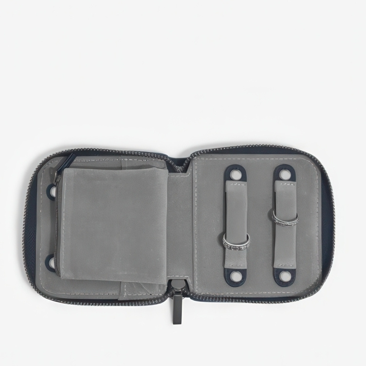 Fodral för smycken, STACKERS COMPACT JEWELLRY PURSE, 11 x 11 x 2,5 cm, Pebble Navy / Grå