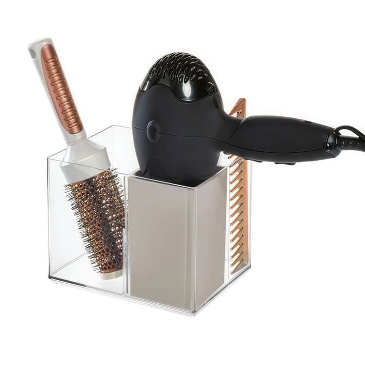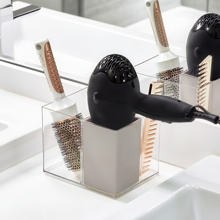En smart, stabil och praktisk öppen låda för förvaring av hårtork och håraccessoarer.