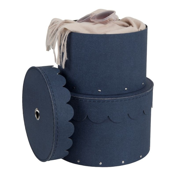 Två stycken små snygga runda praktiska förvaringsboxar.