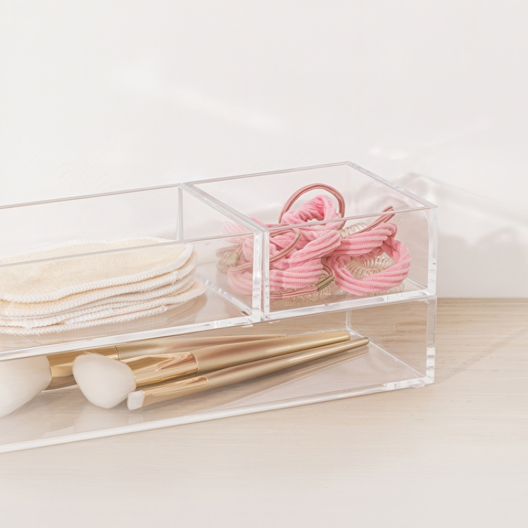 Lådinsats / förvaringsbricka i klar akryl i serien Selena.