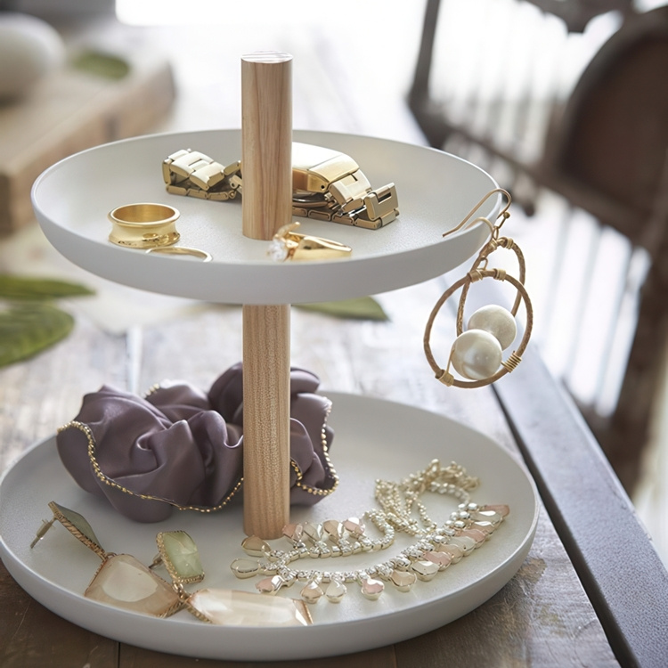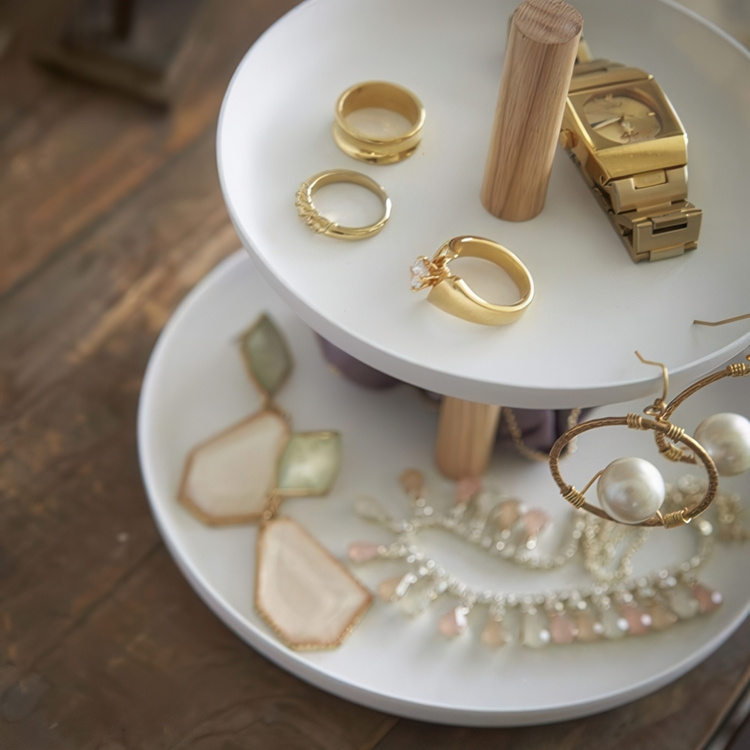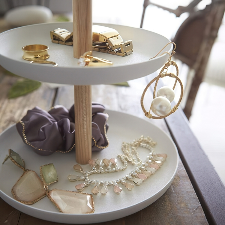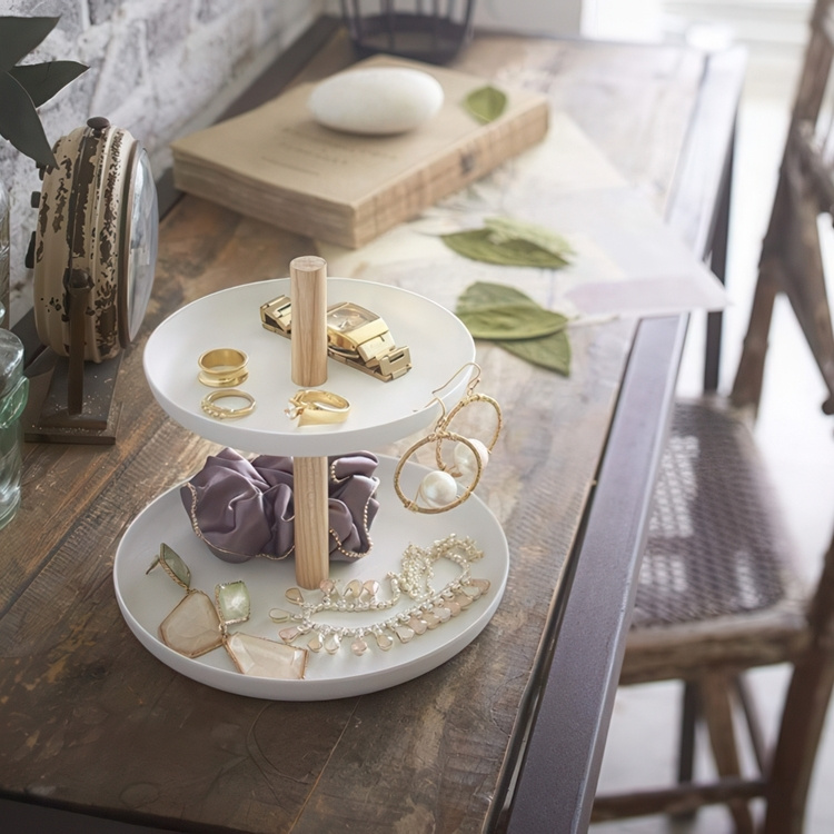 Förvaringsfat / smyckesfat från japanska Yamazaki. Två nivåer för perfekt förvaring av ringar, örhängen, gem, mynt eller mobil etc. -