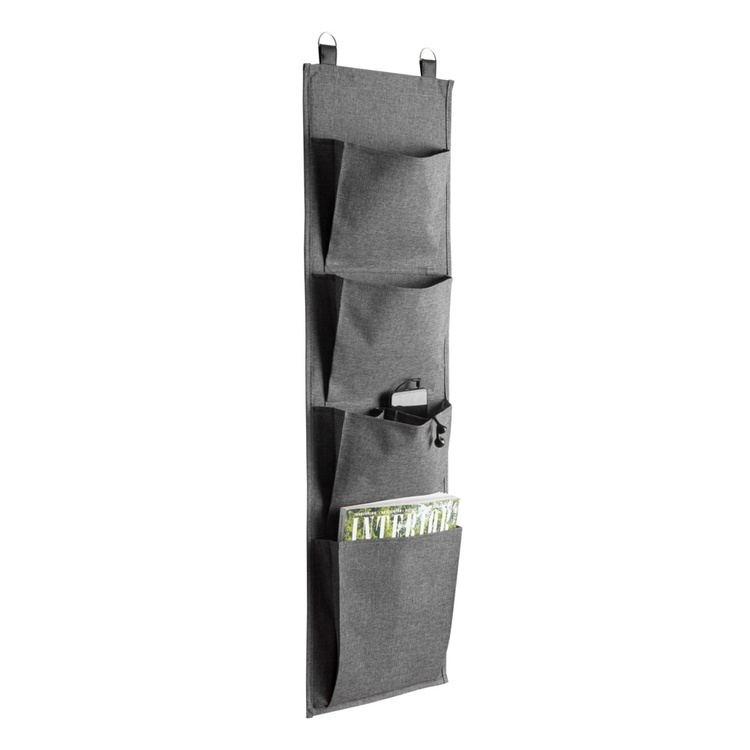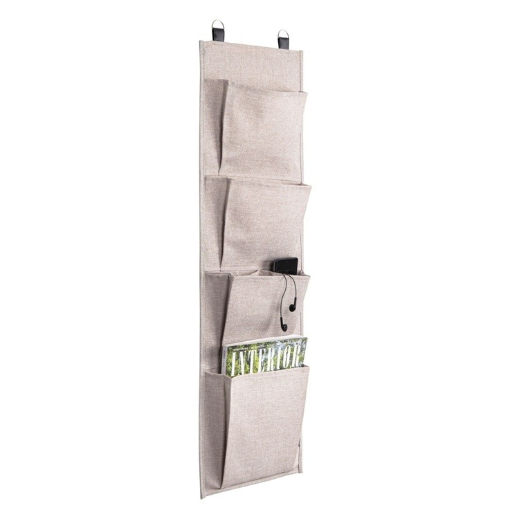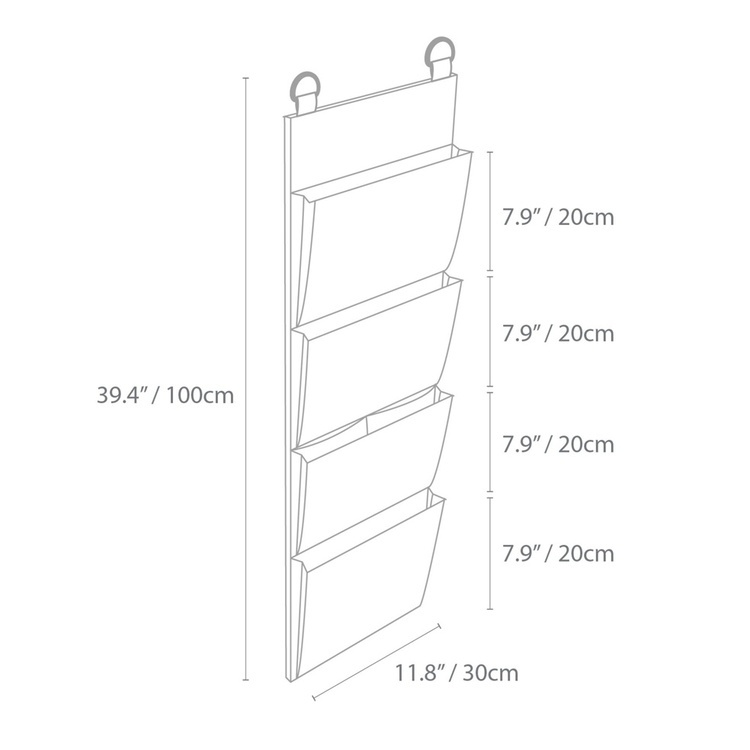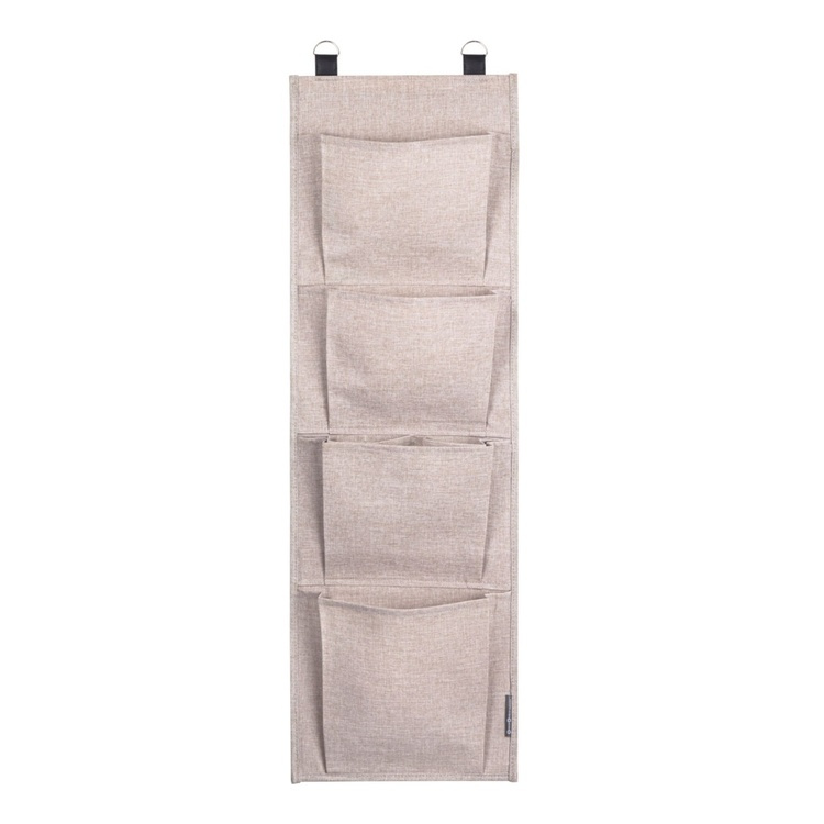 Förvaringsfickorna kan enkelt hängas på en vägg eller baksidan av en dörr och utnyttjar ytor som annars ofta lämnas tomma. När den inte används kan den fällas ihop platt och förvaras smidigt. Den stilrena designen gör att den passar lika bra i sovrummet som i badrummet eller hallen.
