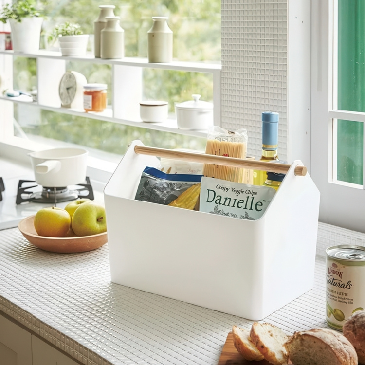 Förvaringskorg, FAVORI, 37 x 21 x H 24 cm, Yamazaki, Vit / Natur
