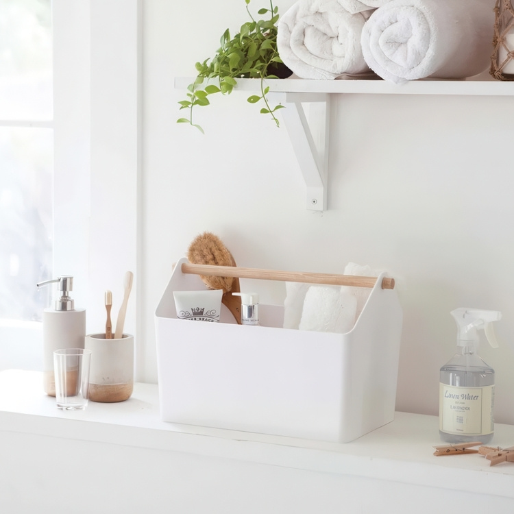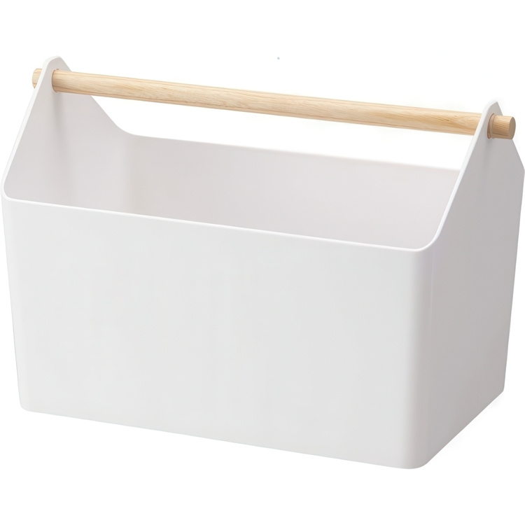 En snygg korg med trähandtag från Japanska Yamazaki. Kan användas för förvaring i förrådet, köket eller badrummet. -