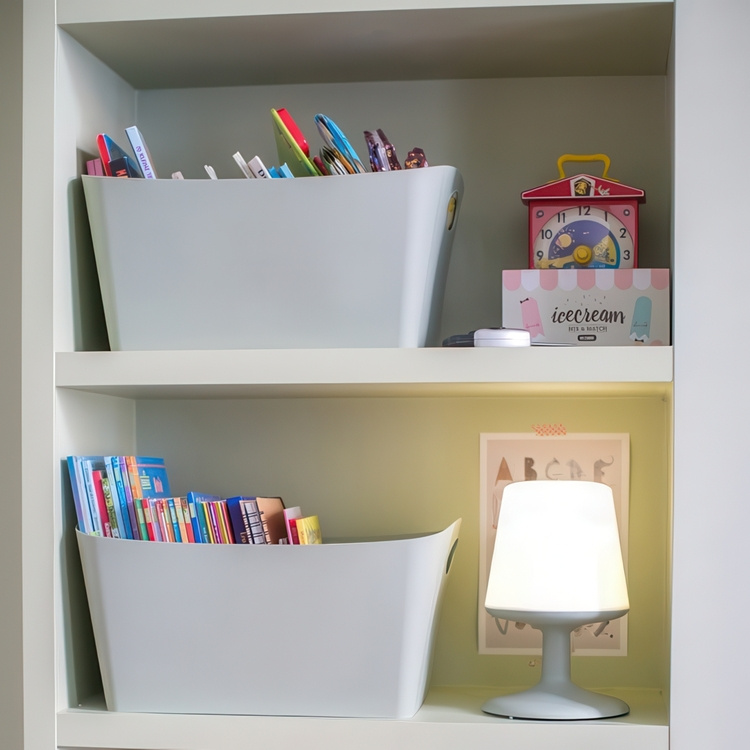 Storleken Small passar på hyllor, i lådor och i skåp.