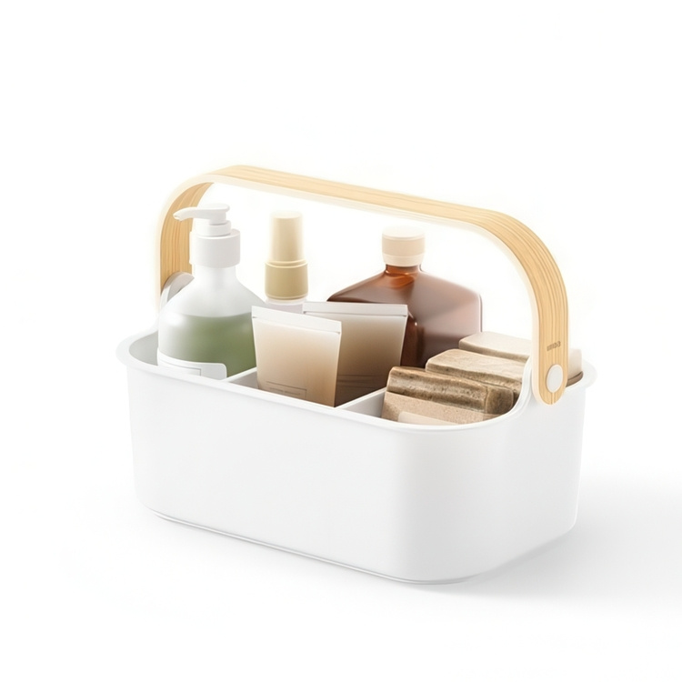 Förvaringskorg med 2 fack, UMBRA BELLWOOD BIN, 29x 17,5 x H 13 cm, Vit / Natur