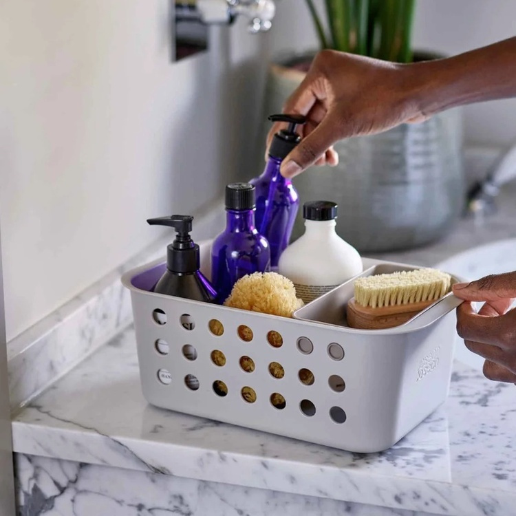 Korgen passar till att förvara olika badrumsartiklar och är perfekt för att organisera på hyllor eller inuti lådor.