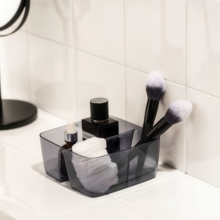 Förvaringslåda av återvunnen plast, 3 Fack, SAN DIEGO, 15,5 x 15,4, x H 7 cm, Transparent grå