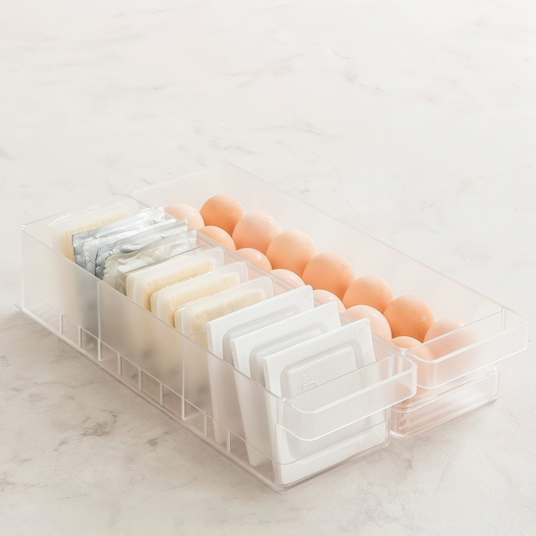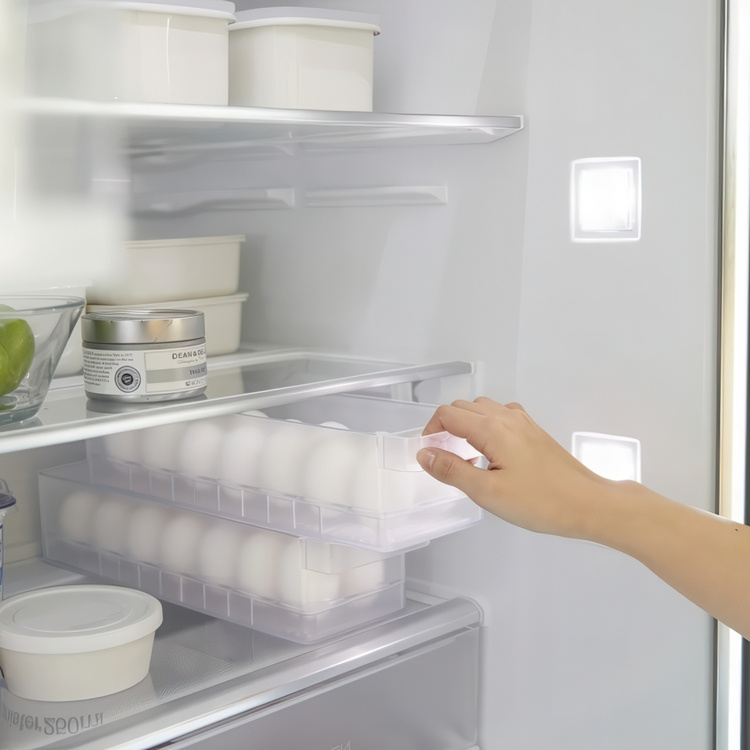 Smal, öppen låda för säker förvaring av 14 ägg.