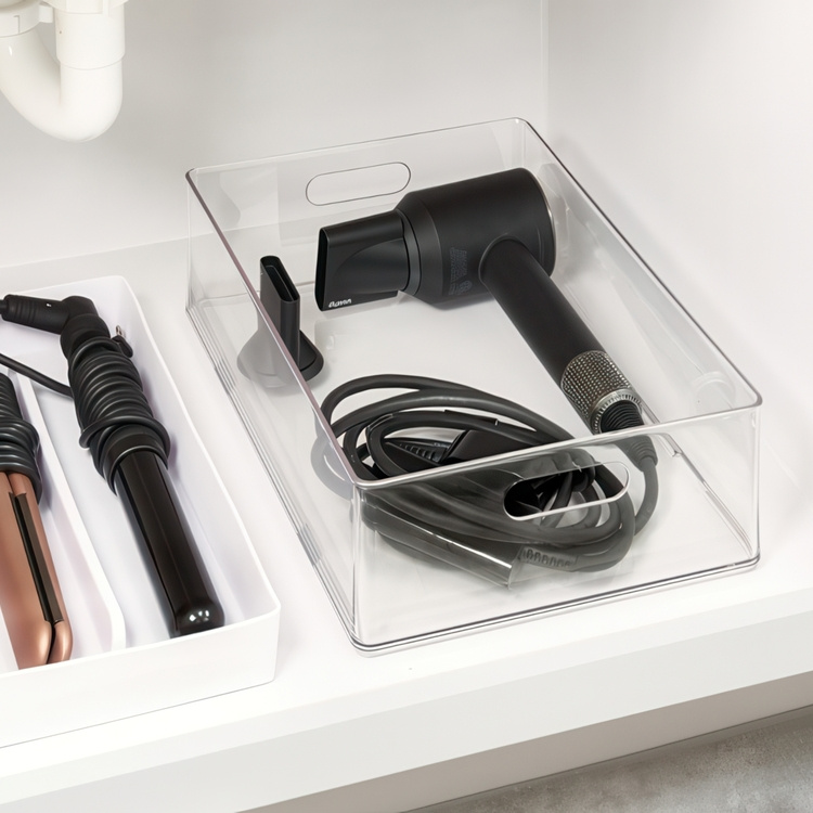 Förvaringslåda, Stapelbar, THE HOME EDIT HAIR DRYER BIN, 28,4 x 25,4 x H10,8 cm, Klar