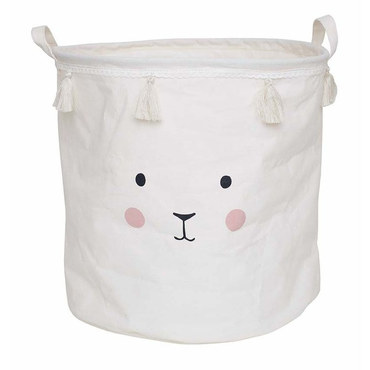 Förvaringssäck med tofsar, WHITE BUNNY, JaBaDaBaDo, Ø 40 x H 40 cm, Offwhite