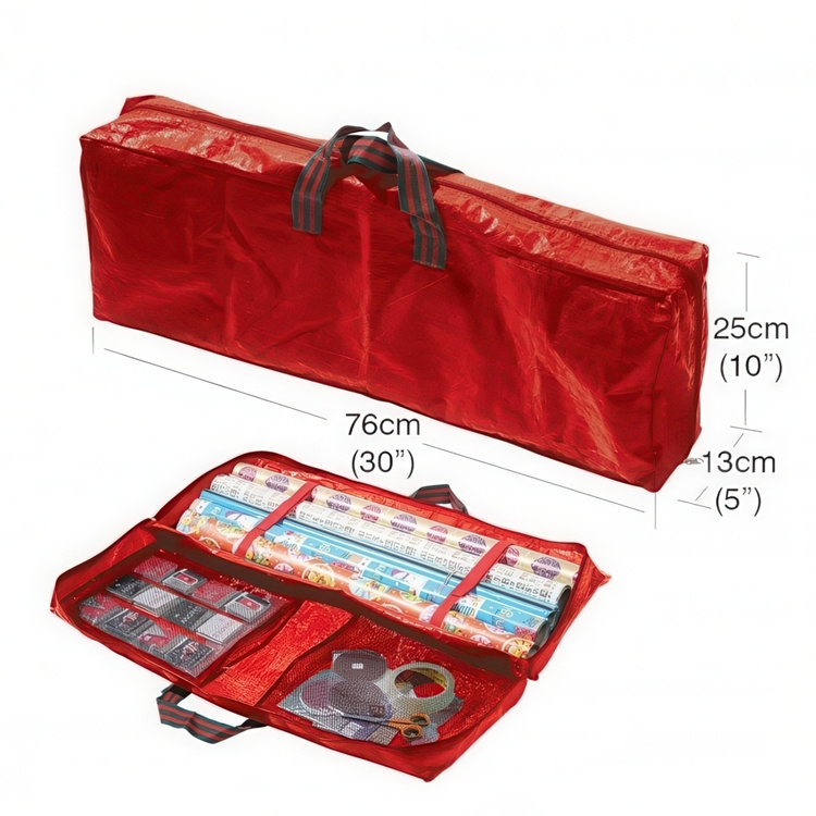 Smart förvaringsväska som gör det enkelt att hålla ordning på presentpapper, snören, rosetter och etiketter på ett och samma ställe. Med integrerade nätfickor hålls små tillbehör organiserade och lättillgängliga, samtidigt som dragkedja och bärhandtag gör väskan både skyddande och lätt att hantera.