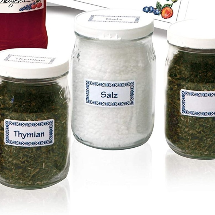 Frysetiketter, Små, 48 st, BLUE BORDER 3,7 x H 1,9 cm , Vit / Blå