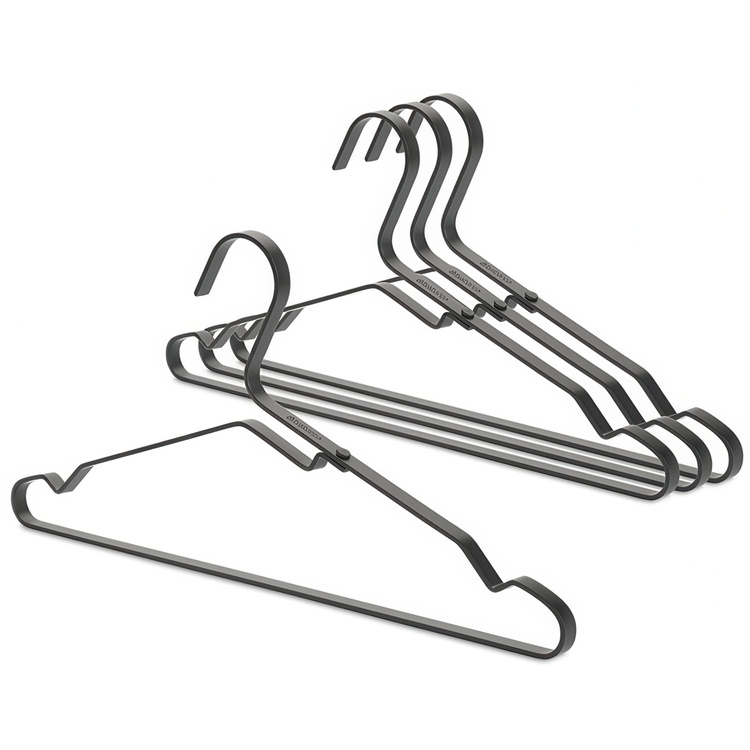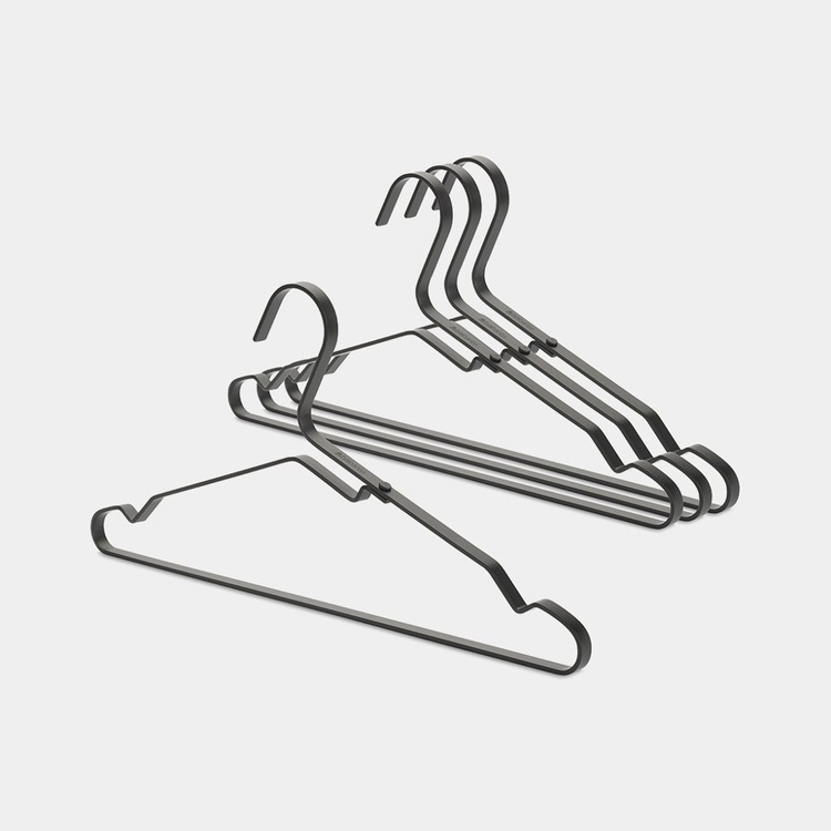 Fyra snygga och smarta klädhängare i aluminium från holländska Brabantia.