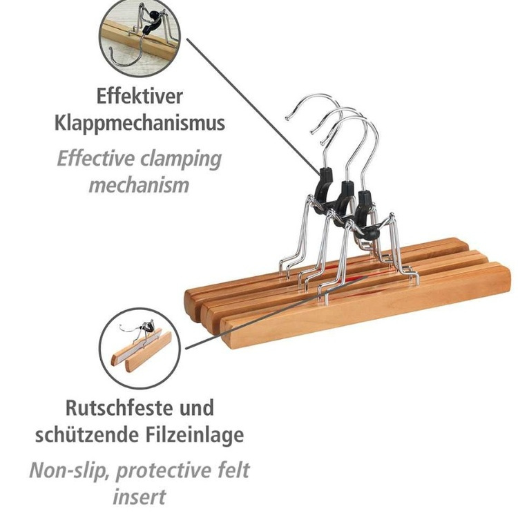 Galgar i trä för byxor och kjolar, 3 st, PREMIUM, Natur