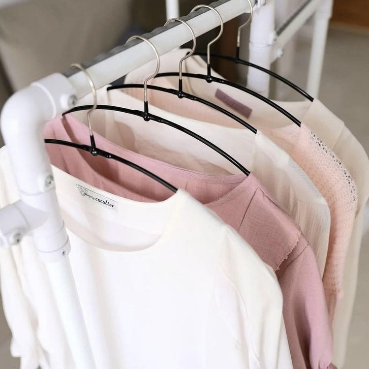 Den böjda formen på galgen gör att det inte blir några märken på tröjorna.