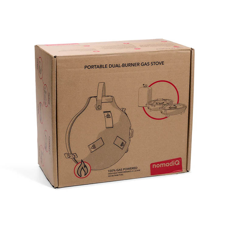 NomadiQ:s gasolspis med två plattor är ett kompakt och portabelt utomhuskök för dig som vill laga mat var du än befinner dig. De två separata och kraftfulla brännarna ger dig full temperaturkontroll på varje platta. Spisen är lätt, hopfällbar och enkel att ta med – perfekt för camping eller friluftsliv.