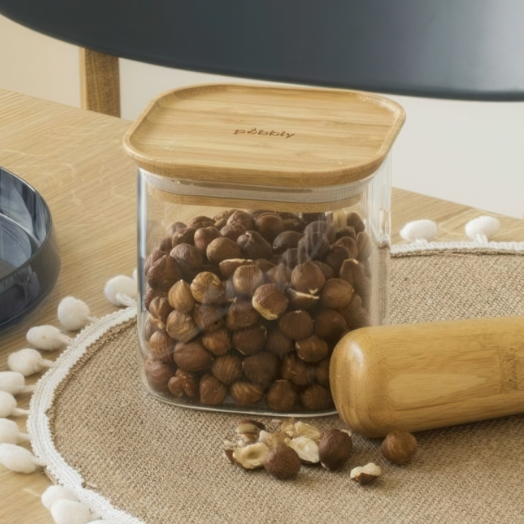 Glasburkar för torrvaror, 3 st, PEBBLY SQUARE MIX, Klar / Bambu