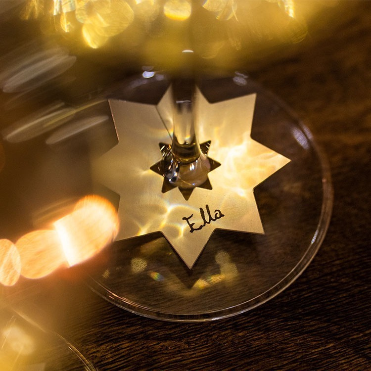 Stjärnorna är vita på ena sidan och silverfärgade på andra sidan och passar glasfötter upp till 12 mm tjocka.