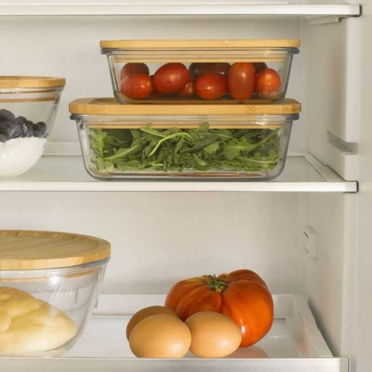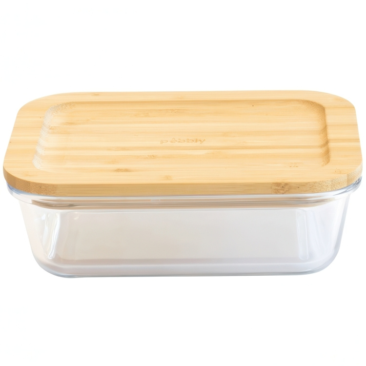Glasmatlåda med Bambulock, 1,8 L, PEBBLY XL COOK & STORE, 23 x 16,5 x H 8 cm, Klar / Natur
