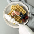 Gräddvispen kan vispa 1–2 dl grädde åt gången. Alla delarna kan diskas i diskmaskin.