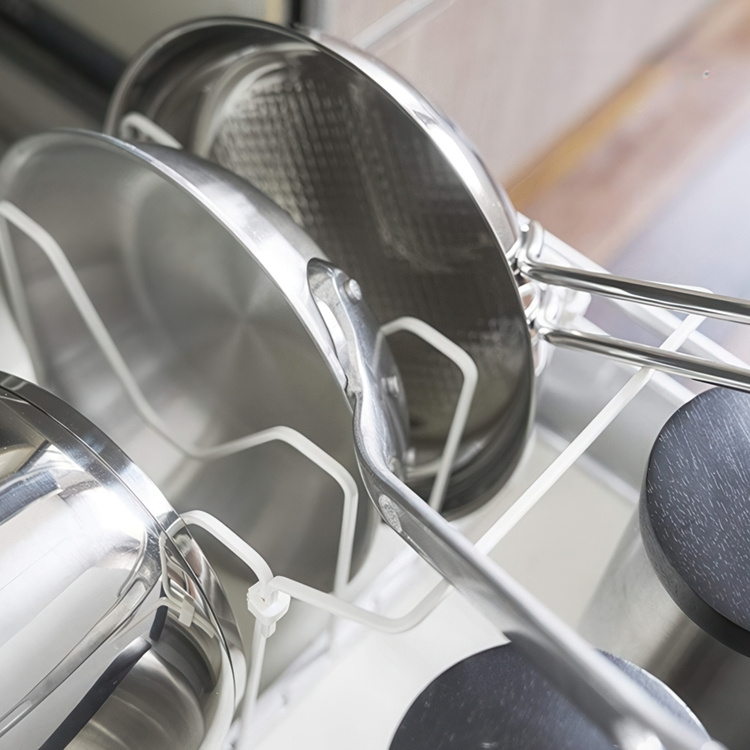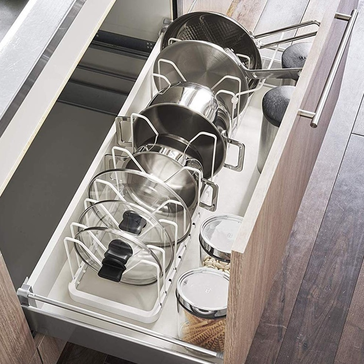 Förvara grytlock och stekpannor snyggt i det här justerbara stället.