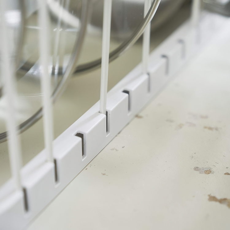 Kan användas på hyllor, i skåp eller på en bänkskiva. Håller dina redskap på plats!