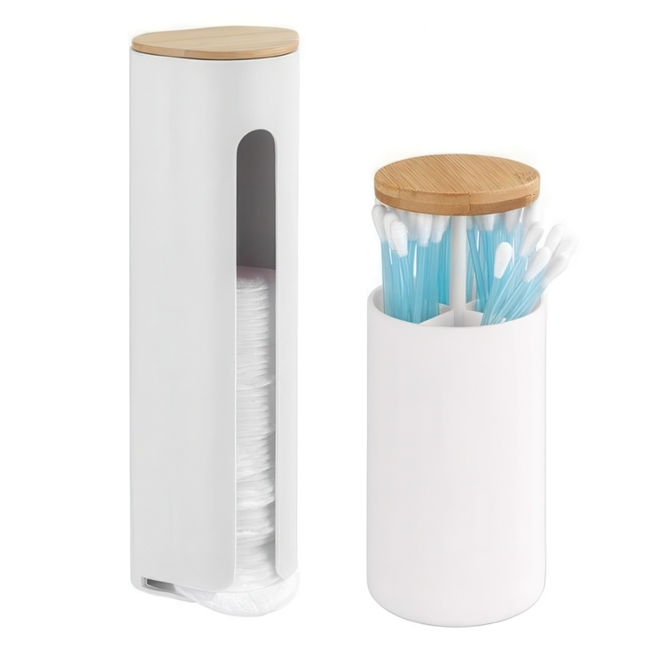 Hållare för bomullspads, LARESA MAKE UP, Ø8 x H25 cm, Vit / beige
