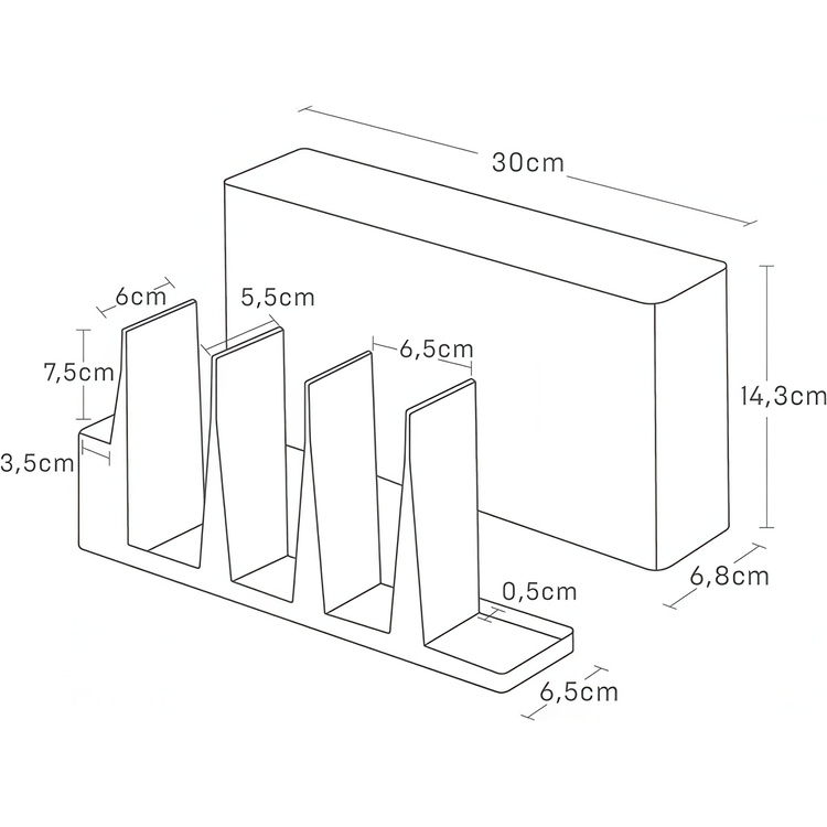 Den långsmala designen gör att den är lättplacerad och tar minimalt med utrymme på din bänkskiva.