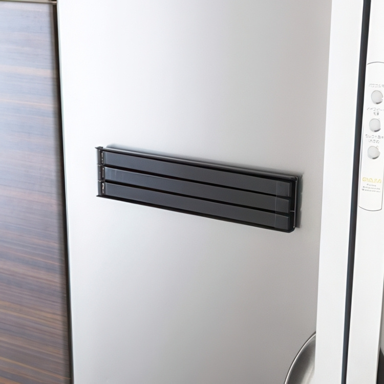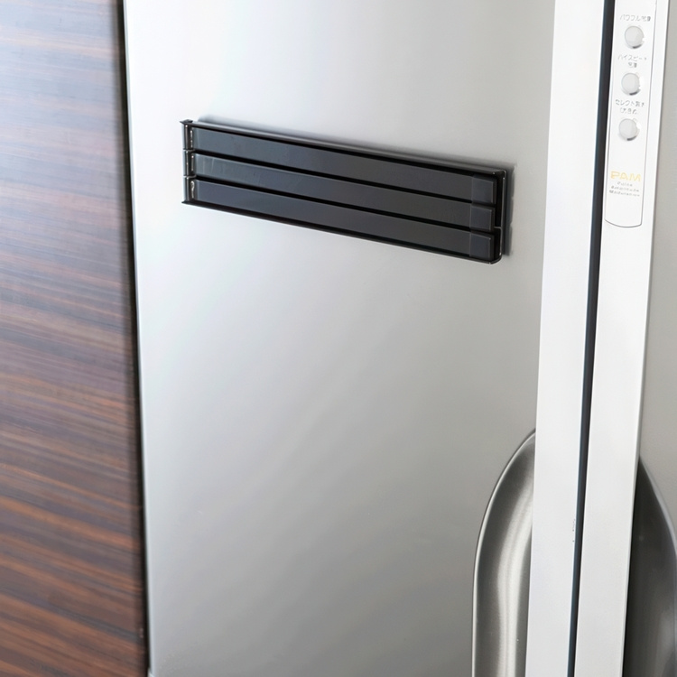 Stilren och snygg magnetisk hängare för handdukar eller disktrasor. Från Japanska Yamazaki. Sätts enkelt upp på metallytor t ex kylskåp, spis mm. Fäll ut hängarna för att torka eller förvara din kökshanddukar.