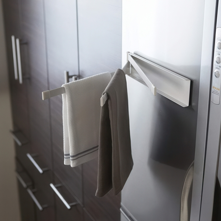 Fäll ut hängarna för att torka eller förvara din kökshanddukar.