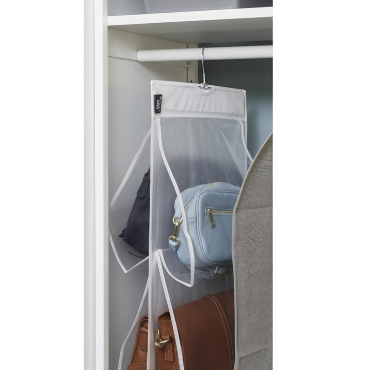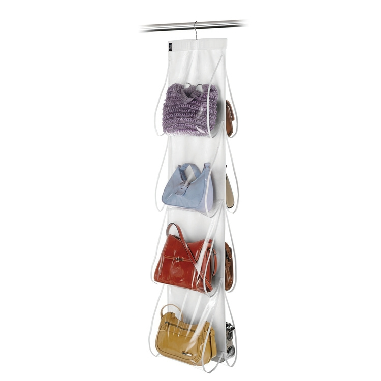 Hängande förvaring för väskor, 8 stora fack, PORTA BORSE, 33 x H 120 cm, Klar