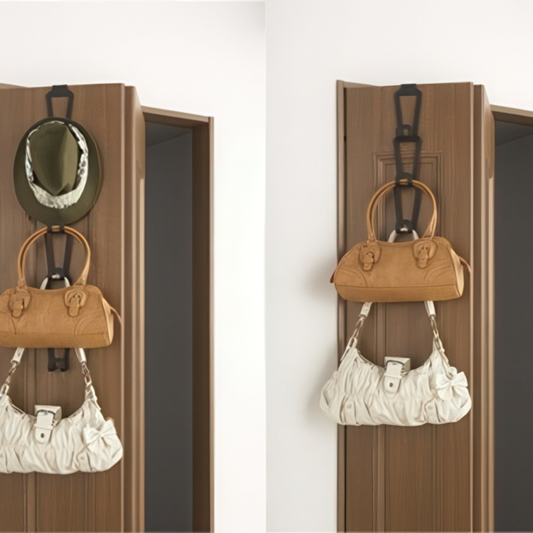 Smart anpassningsbara förvaringskrokar från Japanska Yamazaki. Kan hängas över dörren, skruvas upp eller hängas upp som en galge. Även längden är anpassningsbar. Lastkapacitet: ca 1 kg per hängare