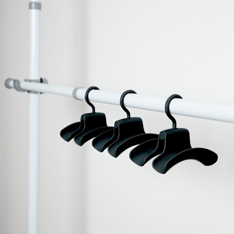 Set med tre smarta svarta galgar för hängande förvaring för handväskor och annat.