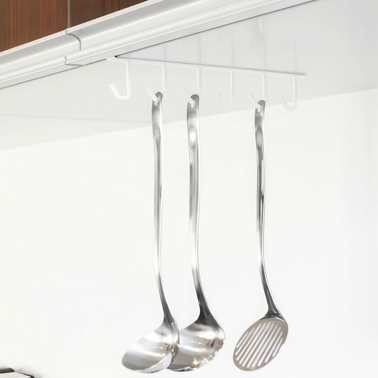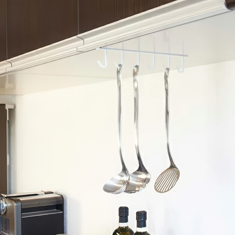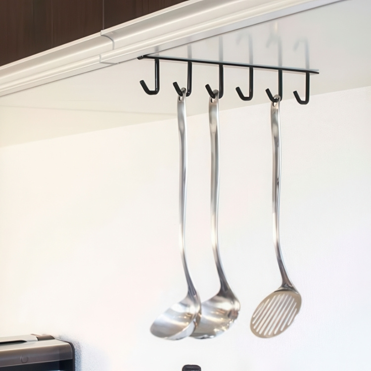 En metallhängare med sex krokar för köksredskap eller koppar från Japanska Yamazaki.
