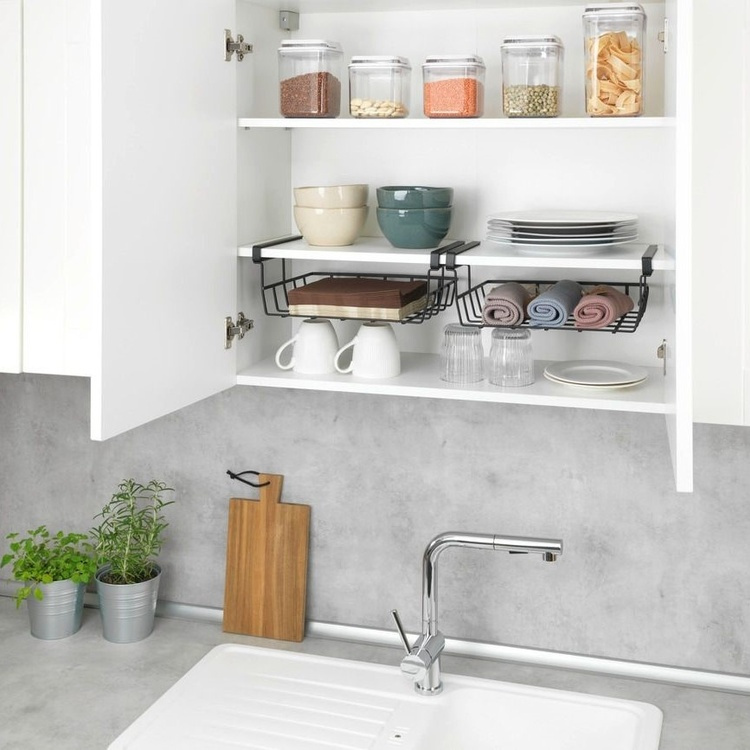 Häng den här förvaringskorgen på hyllan och maximera din förvaring i köket.