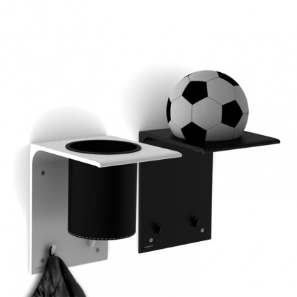 Hyllan för boll och saker är en svensk innovation av Anna Strömbert och finns i färgerna svart och vitt.