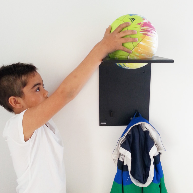 I ett fotbollsspelande hem finns det en stor chans att det ligger bollar lite här och var i hallen. Men istället för att lägga upp den smutsiga bollen på skohyllan får nu bollen ett eget hem på denna smarta hylla!