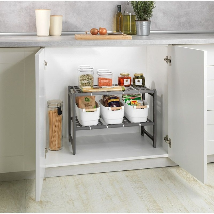 Hylla för under diskbänken, Justerbar, ADJUSTABLE UNDER SINK SHELF, 45 - 80 cm, Grå