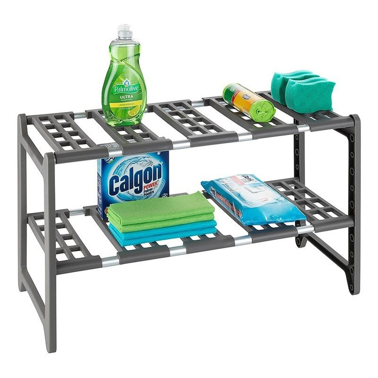 Praktiskt och smart förvaringshylla för under diskbänken / handfatet i köket eller badrummet.