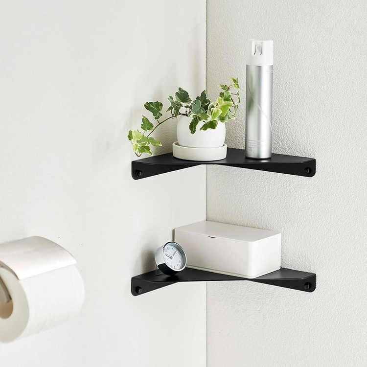 Hylla i metall, För hörn, TOWER CORNER SHELF, Yamazaki, Svart