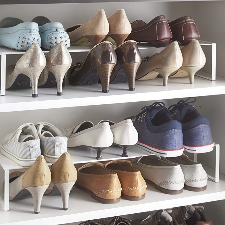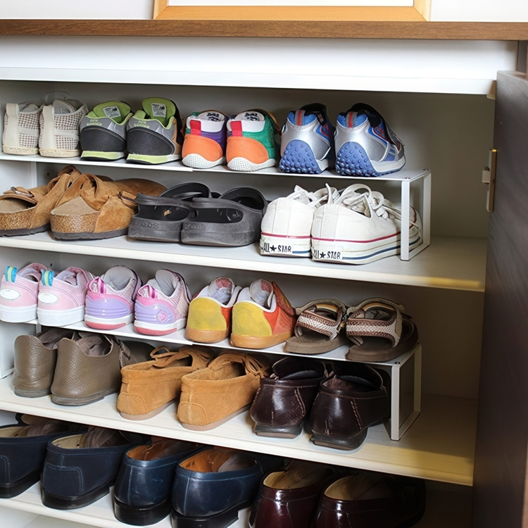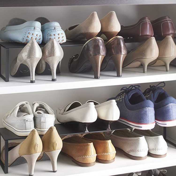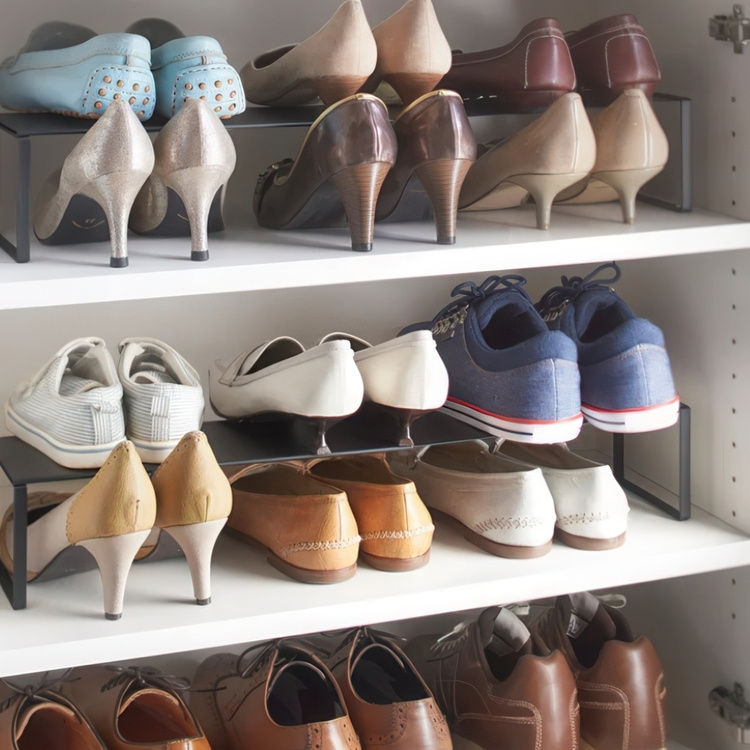 Passar bra i hallen som lien skohylla eller som extrahylla i skåp och garderober.