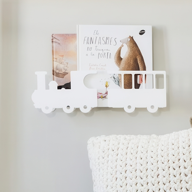 Hyllor för böcker, Lok med vagn. WHITE TRAIN BOOK SHELF, Vit