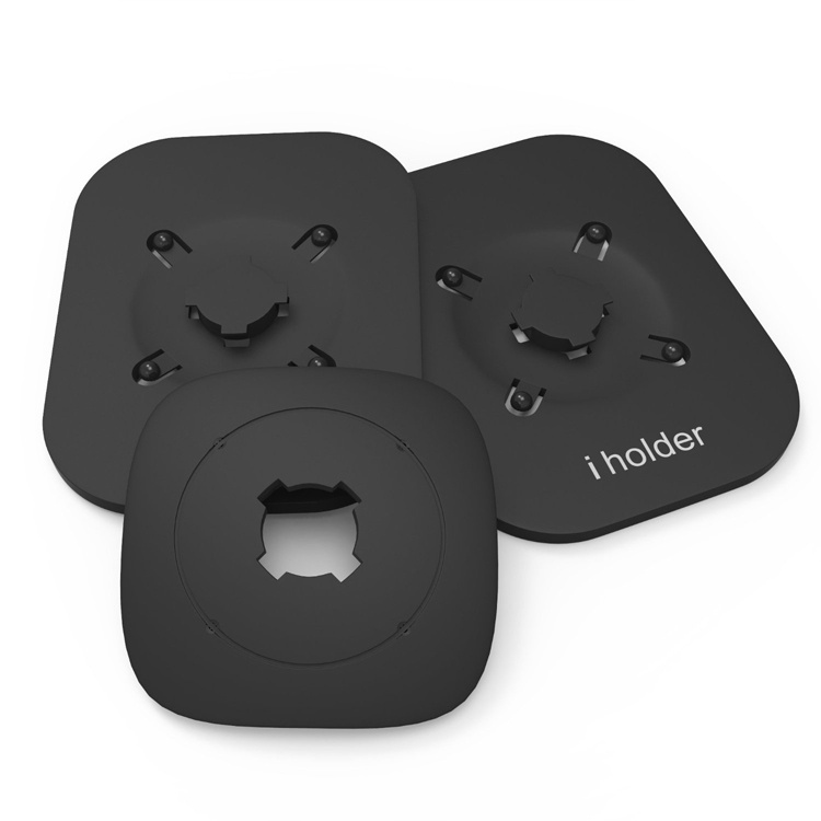 iHoldern är enkel att fästa och lika enkel att ta bort. Paketet innehåller ett fäste som du fäster på telefonen eller plattans baksida, ett hårt fäste för plana ytor och ett flexibelt fäste som gör att du kan klistra det mot en bågnande yta, t.ex din instrumentbräda i bilen. Självklart kan iHoldern även tas bort och den lämnar inga rester efter sig.